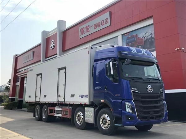 乘龙H7 8x4冷藏车,属于冷藏车中的高端序列。11L发动机,最大500马力,搭配AMT变速箱,储备动力足,爬坡不减档,匹配小速比后桥,经济车速达到85km/h以上,切实保障冷链运输时效性。