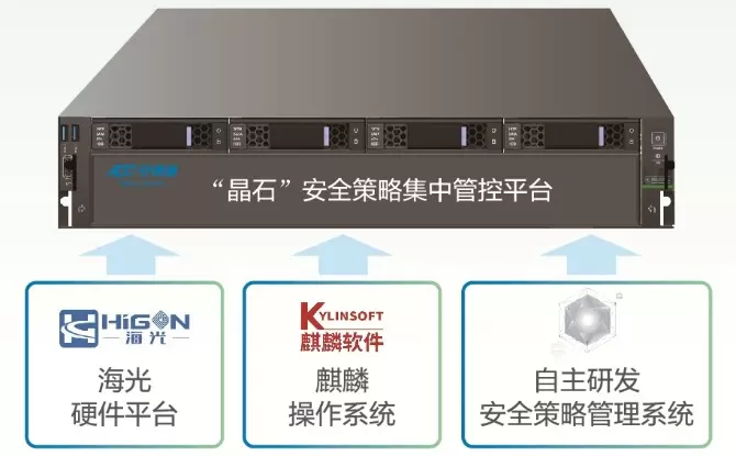“晶石”信创一体机基于海光硬件平台、麒麟操作系统,以及安博通自主研发的安全策略管理系统,兼容适配国内主流信创防火墙,已通过国家金融信创生态实验室权威机构的检测认证。