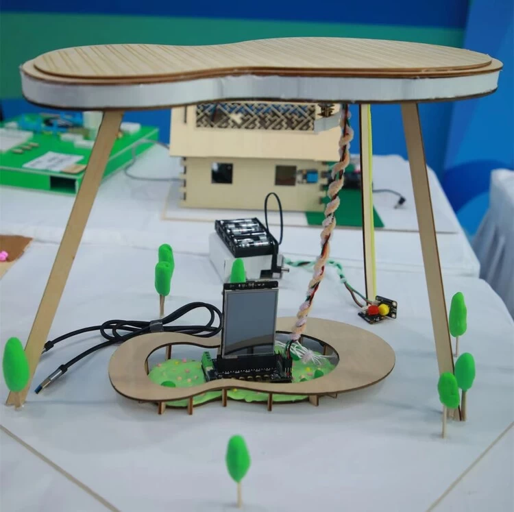 8月17-19日,参赛选手根据专家评委现场公布比赛主题进行现场创作。通过团队分工协作,小选手们开动脑筋仔细思考选题,充分挖掘赛题中的创新点,熟练运用青少年编程软件Mind+等编程软件与3D打印、激光切割与雕刻技术,使用 Arduino 、micro:bit、行空板等主控器结合各类开源硬件中的传感器与执行器如颜色识别传感器、语音合成&识别模块、人工智能视觉传感器二哈识图(HuskyLens)等将创意付诸实践。经过“头脑风暴”,小队员们在短时间内就根据自身的实际生活经历设计出了可随温度和季节变化进行自动荐货和换货的“智能售货机”模型、“安全候车提示系统”、“AI智能公交站”、“智能餐饮车”等“便利生活”的科创作品。小选手们设计的初衷是希望他们可以利用物联网和人工智能的一些技术,通过这些“小小的零件”和科技创新去改变我们的生活。