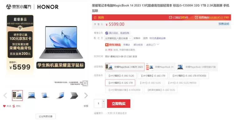 荣耀MagicBook 14 2023 32GB预售开启,轻薄本进入大内存时代