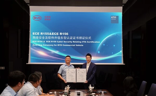 ATIC泰测助力比亚迪商用车成功获取ISO/SAE 21434及UN R155/156体系与车型共5张证书