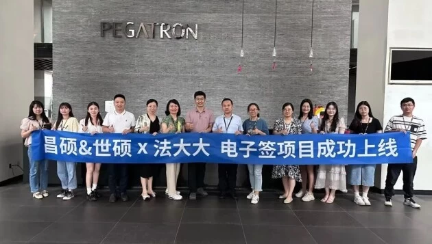 近日,世界500强企业和硕联合旗下上海昌硕科技有限公司(以下简称“昌硕科技”)、世硕电子(昆山)有限公司(以下简称“世硕电子”)的电子签项目正式上线。上线仪式在上海浦东和硕集团科研大楼举行,昌硕科技和世硕电子的HR、IT、法务等部门负责人及团队成员,法大大前端商务、交付、客户成功部等负责人及团队成员出席仪式,共同见证昌硕科技与世硕电子在人力资源数字化创新的飞跃。