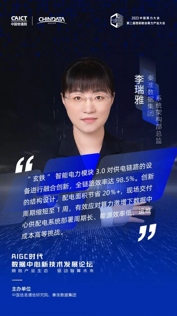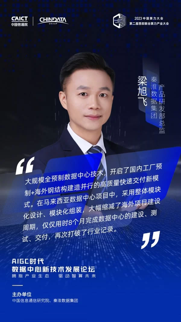 8月18-19日,2023中国算力大会在宁夏银川隆重召开。大会期间,由中国信息通信研究院和秦淮数据集团联合主办的AIGC时代数据中心新技术发展论坛于18日成功举办。论坛以“拥抱产业生态驱动智算未来”为主题,聚焦大模型时代数据中心的技术发展趋势和创新实践路径。