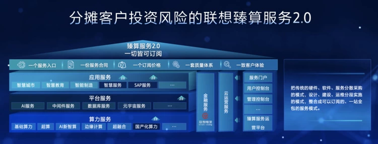 在智算中心的建设上,联想推出集咨询、设计、集成和运维的一站式服务解决方案。联想智算中心解决方案涵盖行业解决方案、PaaS、IaaS以及绿色低碳的智算中心基础设施等领先技术架构,同时具备咨询设计、集成建设、运维服务、持续优化服务的全周期陪伴式服务能力,全程陪伴客户智能化转型。通过“一切皆可订阅”的联想臻算服务2.0,客户可按需订阅、灵活付费,全面助力解决客户痛点,触达多行业、覆盖全场景。