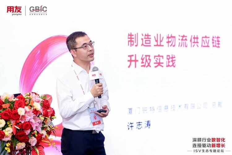 厦门锐特信息技术有限公司总裁许志涛基于制造业物流供应链升级实践,详述与用友携手助力制造供应链价值升级、共建数字化供应链生态圈;北京华融启明风险管理技术股份有限公司总经理周伟相继分享了启明套期保值风险管理系统,与用友一起合作共赢,实现价值变现;一点知识(北京)科技有限公司COO展帮营聚焦人才培养,分享如何与用友一起,为客户提供更个性化、智能化、场景化的解决方案,帮助企业实现人才战略的落地和企业培训的全场景赋能。