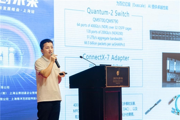 作为本次峰会的主办单位,超擎数智技术经理刘畅以《超擎数智算力、网络产品与解决方案》为主题,重点介绍了超擎数智领先的算力、网络产品与解决方案,以及超擎数智在客户应用场景中丰富的设计方案与实施经验。作为NVIDIA网络的Elite精英级合作伙伴和计算的Preferred优选级合作伙伴,超擎数智通过和NVIDIA深度合作,以出色的产品、方案性能和卓越的技术服务,大幅提高客户业务加速能力,为人工智能算力的发展提供有力支撑。