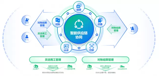 对于供应链复杂的企业,百望云还将提供智能供应链协同解决方案,以票据数字化、流程自动化、决策智能化为核心,通过应付管理流程自动化及对账结算数字化,帮助企业与其供应链业务伙伴高效协同,大幅提升交易效率。