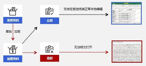 针对本地文件,涉密文档同步至本地后自动加密,并进行用户行为管控;