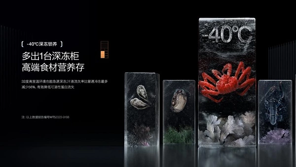 作为行业第一台家用深冻冰箱,天墅冰箱成功攻克-40℃的深冻技术难题,可以实现冻得深、冻得快、冻得多。目前行业普遍的-30℃低温只能在25℃室温下运行,而天墅冰箱在32℃环境温度下依然可以快速运行至-40℃。此前,普通冷冻-18℃要制冷5小时才能达到,而天墅冰箱只需要3.5小时即可达到-40℃,食材快速通过冰晶带,有效降低大分子可溶性蛋白流失,留存更多营养。