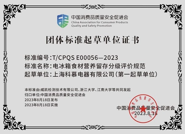 国内首个“营养冰箱”标准发布,COLMO天墅冰箱荣获“特级”领跑行业