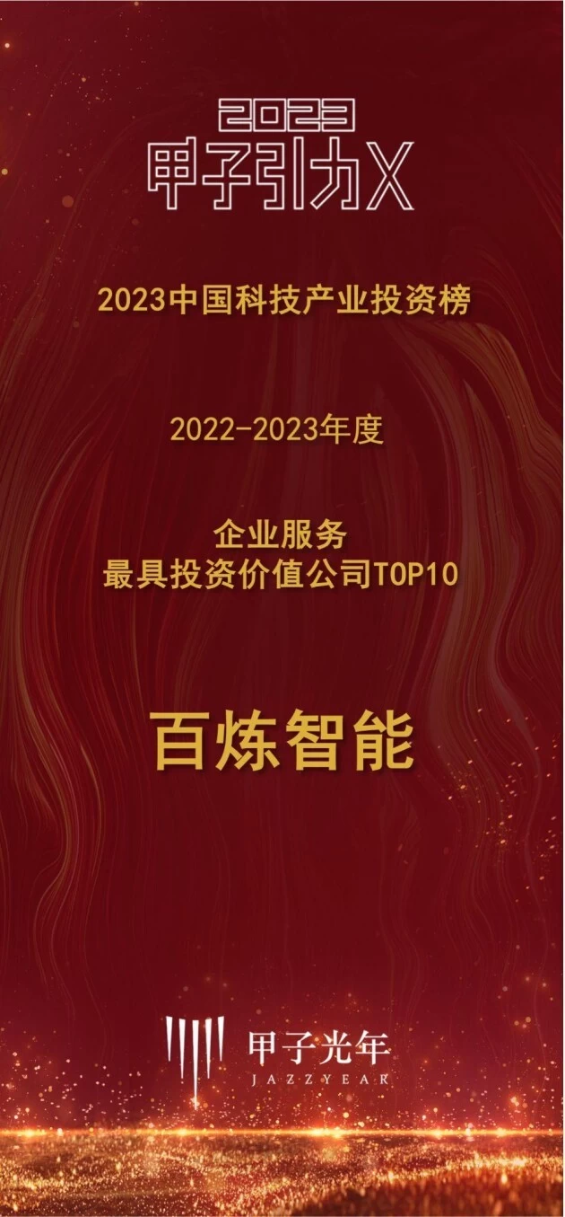 - 百炼智能入选甲子光年“2022-2023年度科技产业最具投资价值企业榜”