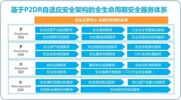 值得一提的是,山石网科结合多年行业客户安全研究、安全威胁处置经验,以自适应的P2DR安全架构为核心,从威胁预测、防御、监控、回溯四个角度出发,通过安全评估、应急保障、攻防演练、安全通告、安全培训等服务方式,着力为客户打造“自适应、全感知、全覆盖”的全生命周期安全服务体系,确保客户的网络安全、业务安全。