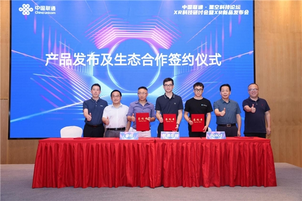 随后,大会现场也举行了XR生态合作伙伴签约仪式,由联通在线公司主导,携手睿悦、Rokid、四开花园、EasyAR、圆周率、insta360等合作伙伴共建XR生态,旨在汇聚起科技、产业、政策等各方力量,共同构筑健康完善的XR生态,协同推动XR产业的快速发展。