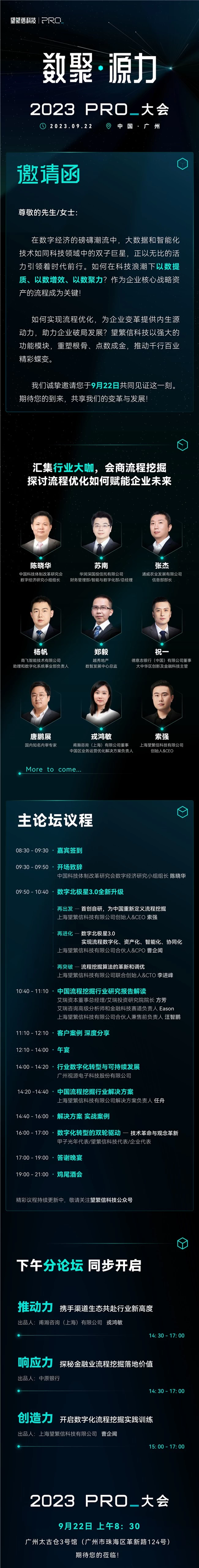 9月22日,望繁信科技将在广州举办流程挖掘年度产业盛会——数聚·源力2023PRO_大会。会上,我们将发布数字北极星3.0及其重磅功能,直指企业数字化转型过程中感受最深刻的痛点。与此同时,我们还邀请到行业专家、流程挖掘领先实践的企业和代表机构,以及产业链合作伙伴分享他们的实践经验和洞见,共议新时代背景下中国企业的流程管理和变革进程。望繁信科技将与所有企业一起,释放数据的力量,迸发创新的火花!