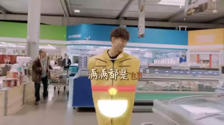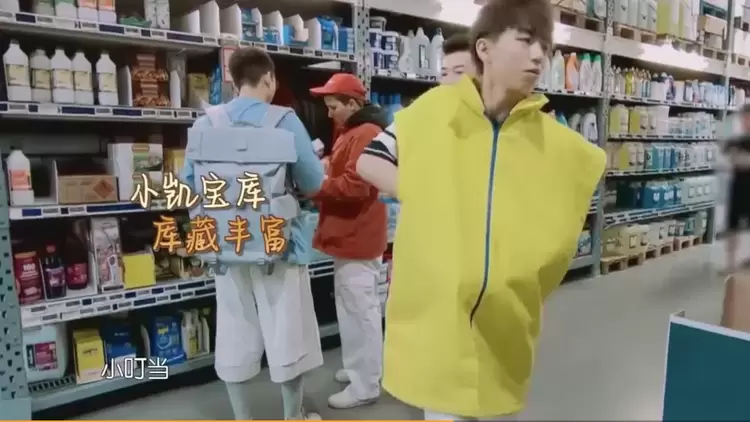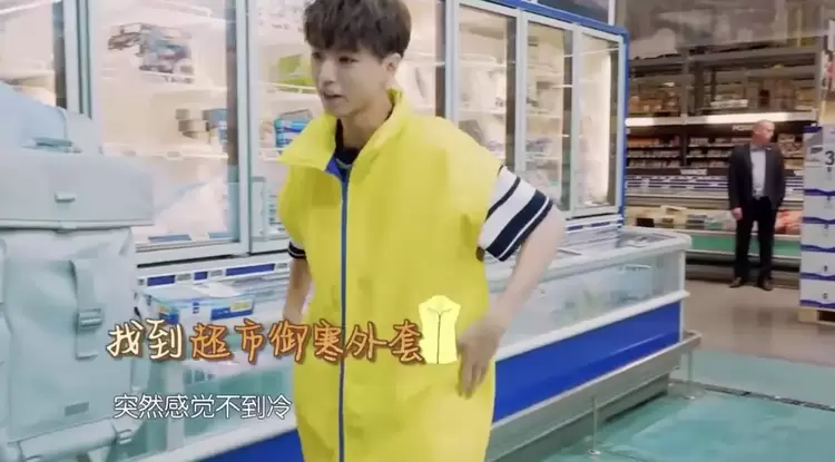 在超市冷藏区域购物时,王俊凯受冻临时穿上超市借来的黄色防寒衣变身“小叮当”哆啦A梦,不一样的服装搭配也让苏有朋和白举纲都夸赞“好看”,到结账时王俊凯还舍不得脱下衣服,苏导干脆让小凯把这件衣服“也买回去”,观众直呼“中餐厅少年团太可爱了”。