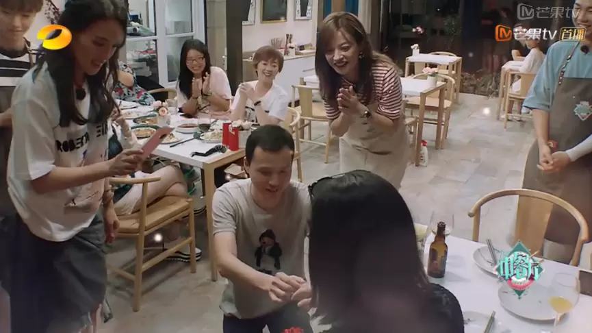 值得一提的是,本期节目中有一对情侣临时来到了中餐厅,而其中男生准备向在一起三年的女朋友求婚,于是悄悄地向苏有朋求助,希望中餐厅五位合伙人能帮他助攻一波。苏有朋要听到后很是惊讶,紧接着就借放包的名义将这名男顾客叫到收银台里面,想一起商讨下求婚方案。