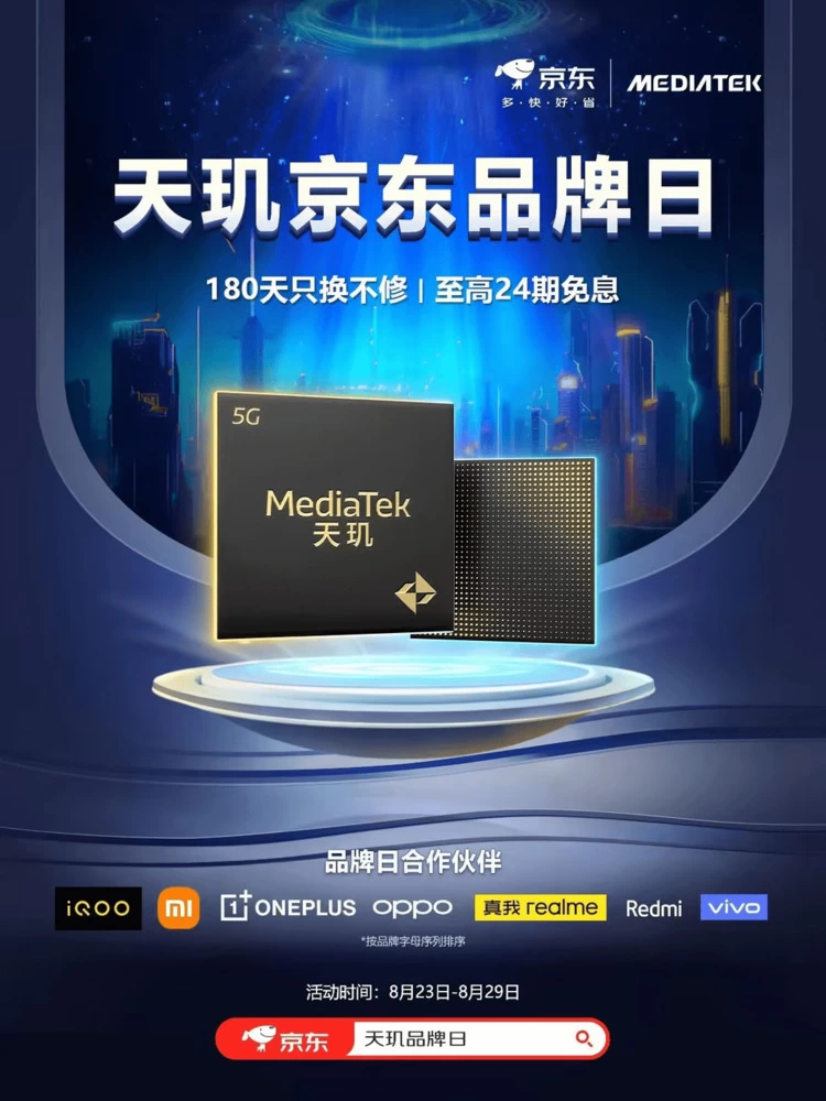 8月23日至8月29日,打开京东商城搜索“天玑品牌日”,即可选购你喜欢的天玑手机。