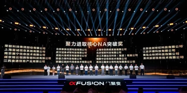 会上,荣联科技集团作为超聚变公司重要合作伙伴之一,凭借在超聚变算力产业中的卓越贡献,获评“聚力进取核心NA突破奖”。