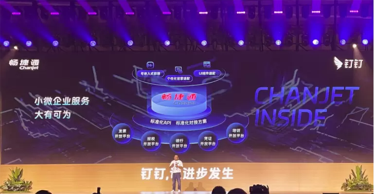 畅捷通依托服务小微企业的多年经验,构建了生态开放平台,并以融合开放的生态策略,引入更多生态伙伴,满足小微企业全渠道场景下差异化与个性化的云服务需求。与钉钉等行业战略型生态伙伴合作,双方主要在产品、技术等方面形成互补,通过生态的内外协力作用,赋能内部服务创新和产品创新,巩固核心竞争力。畅捷通希望未来能将财税应用、各类微服务都嵌入到各个生态场景中做到畅捷通“Inside”。