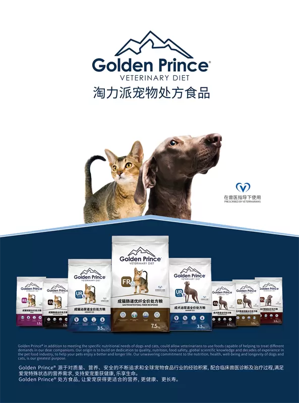 Golden Prince®处方食品的上市,将为患病犬猫的康复带来福祉!