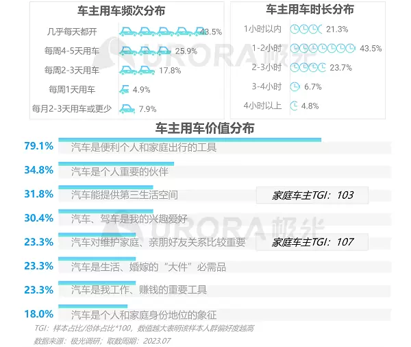 用户潜力:车主整体用车频次高,家庭车主将汽车视作维系家庭关系的第三空间