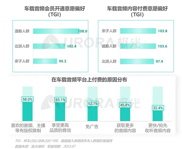 商业潜力:重点场景车主用户会员开通偏好度高,亲子人群更愿意购买付费音频内容