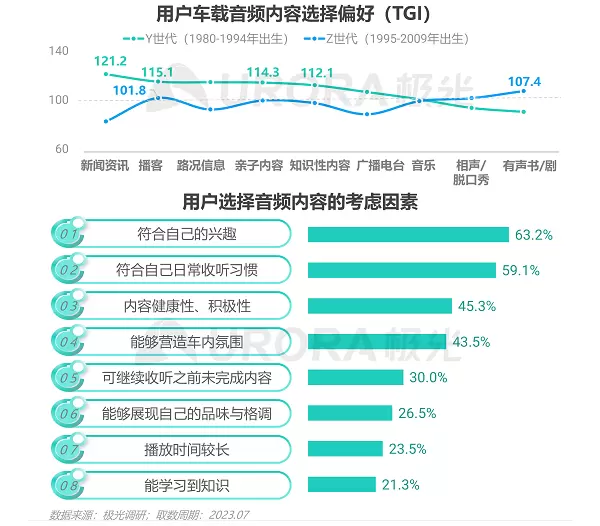车载音频用户内容收听偏好多元化,Y世代偏爱新闻资讯和播客,Z世代偏爱有声书/剧