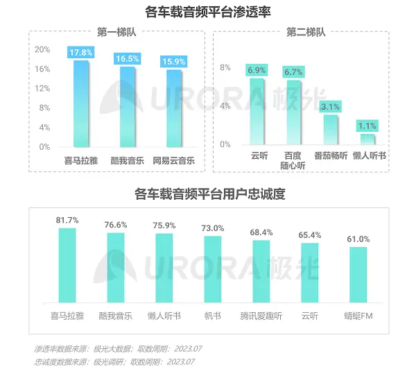 车载音频平台用户渗透率呈梯队分化,喜马拉雅用户忠诚度高