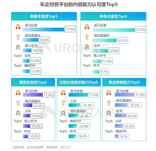 车企高度关注音频平台各项品牌力,喜马拉雅品牌能力整体优势显著