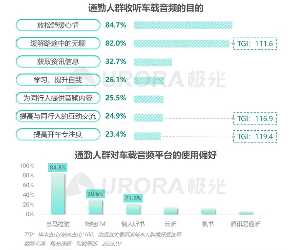 通勤人群洞察:更倾向为提高专注度而收听音频;喜马拉雅为通勤人群第一选择平台