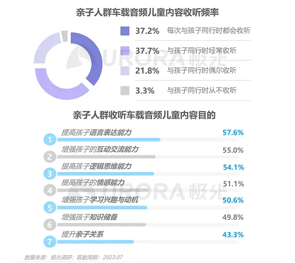 亲子人群洞察:收听儿童内容成为亲子人群出行习惯,旨在提升孩子的语言和互动交流能力