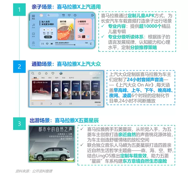 案例:头部平台喜马拉雅为三大重点场景定制出行方案,为不同车主提供个性化场景化座舱服务