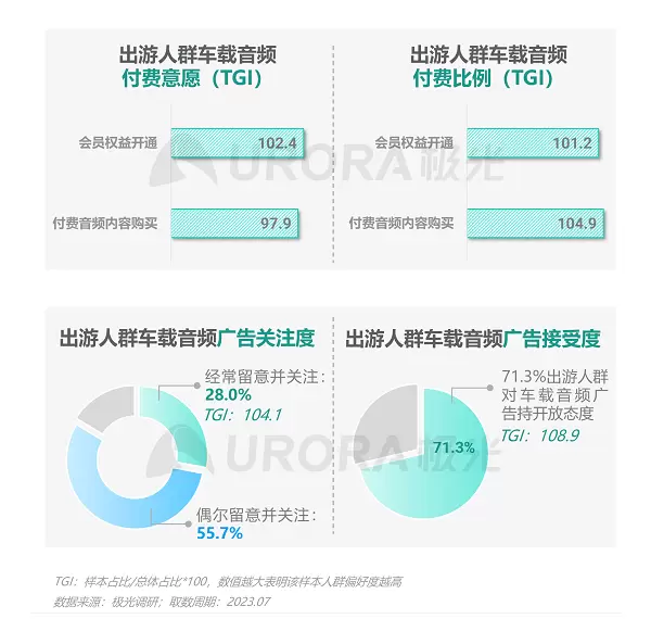 出游人群洞察:对车载音频的付费意愿度和广告意愿度更高