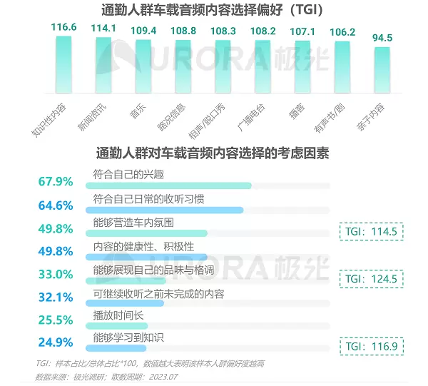 通勤人群洞察:偏好知识性音频内容,注重内容对品味格调的展现和氛围营造作用