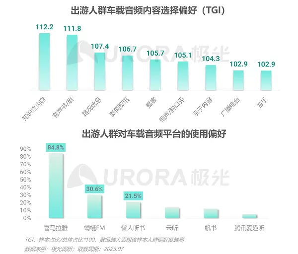 • 拥有丰富知识性内容资源和有声书有声剧资源的喜马拉雅成为了出游人群最偏好使用的车载音频平台