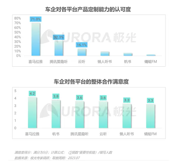 车企厂商更认可喜马拉雅整合定制能力,整体合作满意度最高