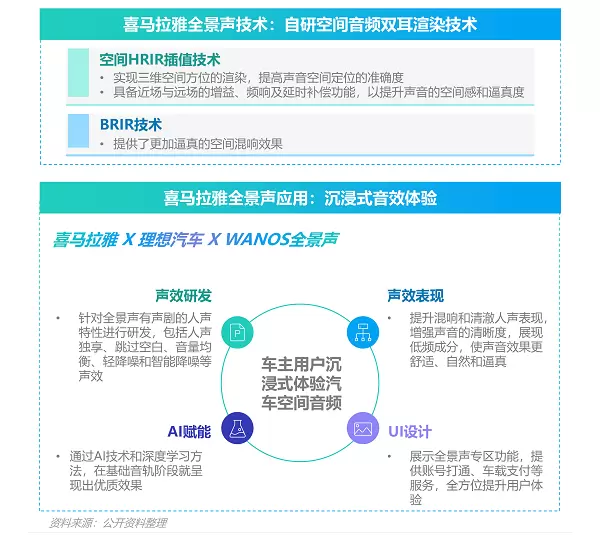 • 喜马拉雅车载全景声技术为用户提供卓越的音频体验,其与WANOS合作推出的全景声有声剧作品已引入理想汽车的L系列车型,配合理想汽车自研的7.3.4音响系统,为用户带来沉浸式的音效体验