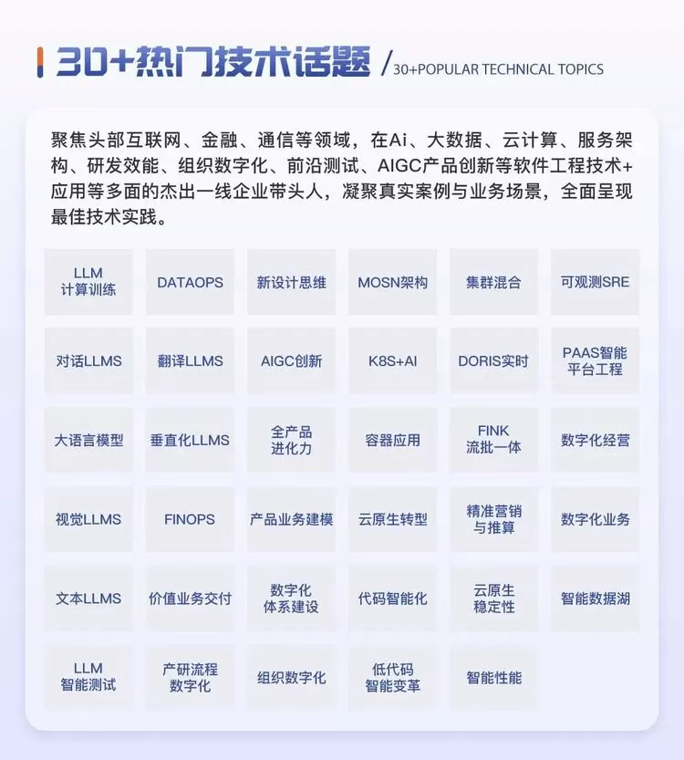 本次峰会,涵盖14+分会场,8+行业领袖、80+业界一线技术嘉宾,从IT发展当下多维度,呈现前沿的技术发展实践和洞见。