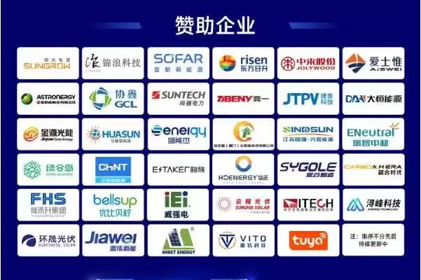 本次活动赞助单位包括阳光电源、锦浪科技、首航新能源、东方日升、中来股份、爱士惟、正泰新能、协鑫科技、尚德电力、奔一电气、捷泰科技、大恒能源、金源光能、华晟新能源、盛能杰、国强兴晟、瑞智中和、绿合岛、正泰新能源、弘正储能、绿合岛、瑞浦兰钧、碳合时代、艾德克斯、瑞能股份、迈贝特、华晟光伏、珈伟新能等……