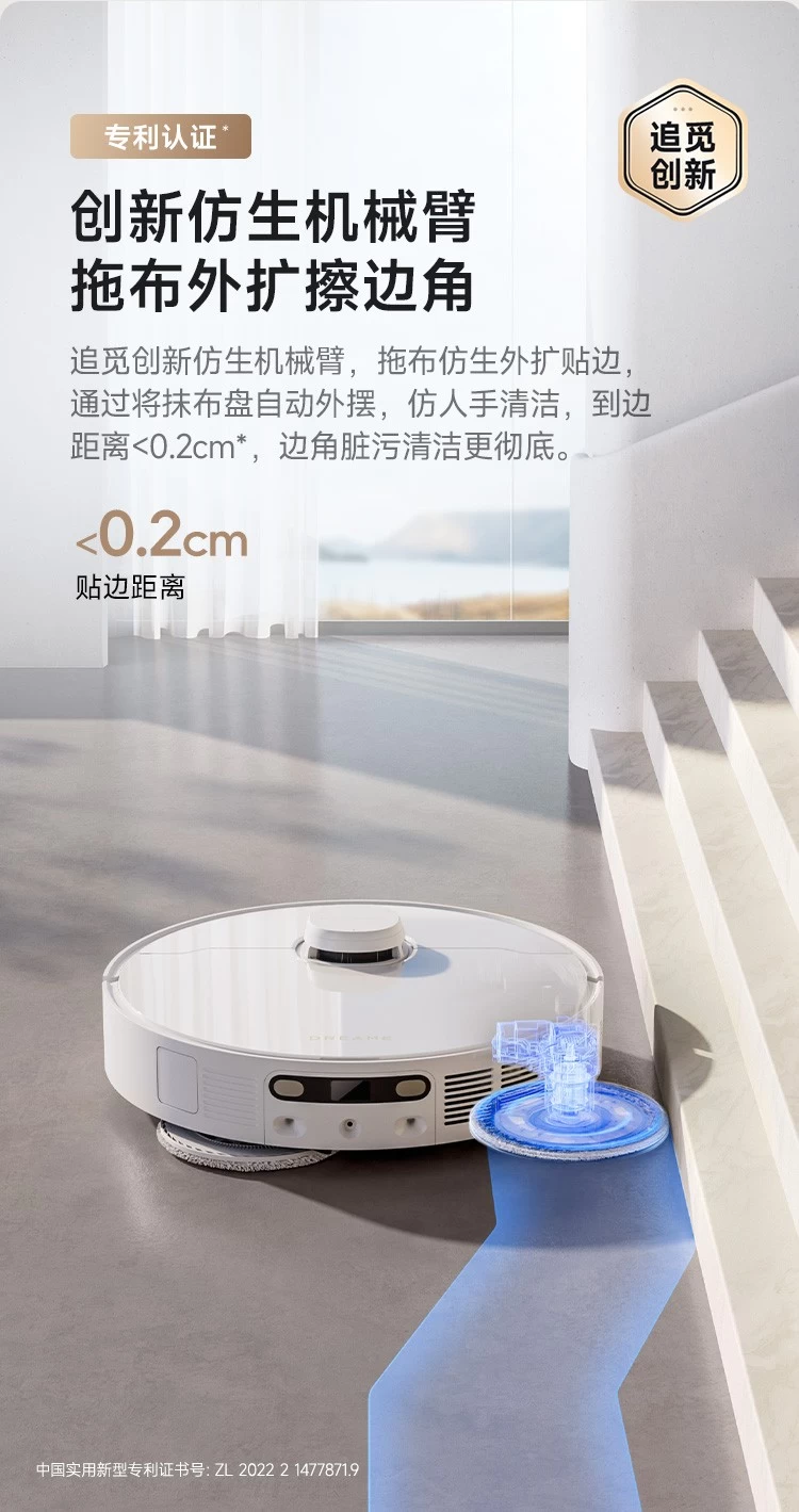 同时,追觅科技也进一步巩固了品牌专利技术护城河:针对“抹布外扩结构”、“抹布升降”、“外摆控制”、“外摆关联应用场景及运行”、“运行可靠性保证”等全链路技术点上进行了全维度的专利布局。
