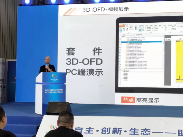 在科技实景运用新产品与技术推介会上,福昕鲲鹏解决方案部经理对公司最新的3D OFD系列软件产品进行了系统的讲解,引发了参会专业观众的关注。3D OFD版式软件系列产品是以国标OFD版式文件为基础融合轻量化三维模型构成的“用模”工具,具有轻量化、文档化、凭证化、易普及等特点,不仅可承载文字、表格、图片、音视频等数据,还可以承载CAD模型、BIM模型等三维模型数据,业务承载能力更强,可满足行业核心业务数据的利用需求。3D OFD版式软件系列产品提供模型轻量化格式转换、模版设计、文档生成、文档阅读的全流程解决方案。可用于产业中设计成果核审校签、采购询价、产品宣传、施工作业、装配安装、维护维修、归档保存、教育培训等多种应用场景。为基建/建筑、装备制造、航空航天、国防军工、电力能源、医疗卫生、教育培训等众多行业的数字化转型与产业升级提供强大助力,是行业数字化、无纸化的必备生产力工具。
