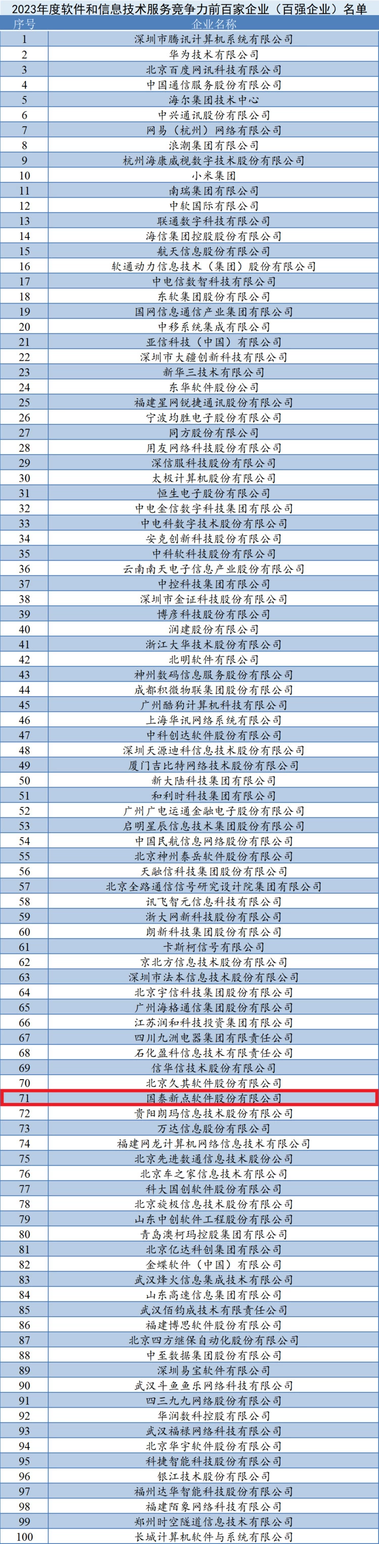 2023年度软件和信息技术服务竞争力百强企业榜单