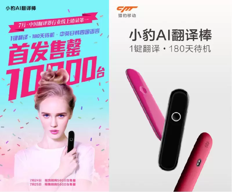 小豹AI翻译棒除了能满足老外追剧的愿望以外,对于我们中国消费者来说,更是境外旅行神器,备受消费者追捧。小豹AI翻译棒自7月19日正式发布后就引起业界的广泛关注,相继在京东和天猫两大电商平台的火爆开售,创下7月份中国翻译器行业线上销量第一的业绩。