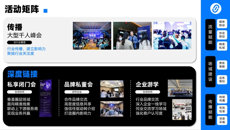 另外,翁依纯还构建了零一的活动矩阵,通过千人峰会、私享闭门会、品牌私董会、企业游学等活动,希望将大湾区以及全国优秀操盘手、创业者链接起来,在实现业务共赢的同时聚拢行业关注度,让大家共同成长。