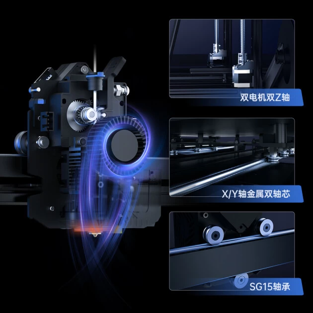 Anycubic Kobra 2 Max、Kobra 2 Plus的高速打印背后,均得益于其搭载的高性能双核Cortex-A7 1.2GHz处理器,可以提供充沛算力,更快计算和执行命令、控制电机运动。同时全面优化的近程挤出机及双电机双Z轴运动结构,可以令耗材高效精准输送、快速冷却成型,运行平稳少层纹。
