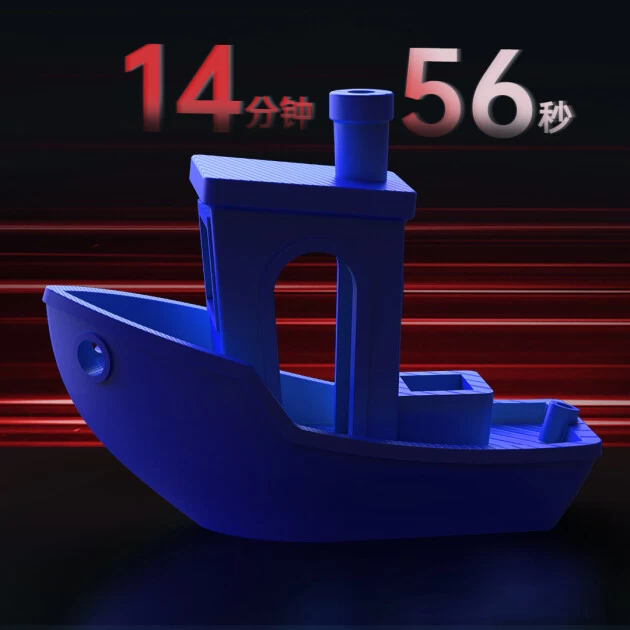 打印标准小船模型,仅需14分钟56秒,用时缩短86%!作为Anycubic Kobra 2系列中的“速度王者”,Anycubic Kobra 2 Pro拥有着300mm/s推荐打印速度、500mm/s至高打印速度、20000mm/s²至大加速度,同样配置的高性能双核Cortex-A7 1.2GHz处理器、全面优化的近程挤出机以及运动结构,造就其飙升10倍的打印速度,而一键振动补偿和流量控制则保证了高质量打印。