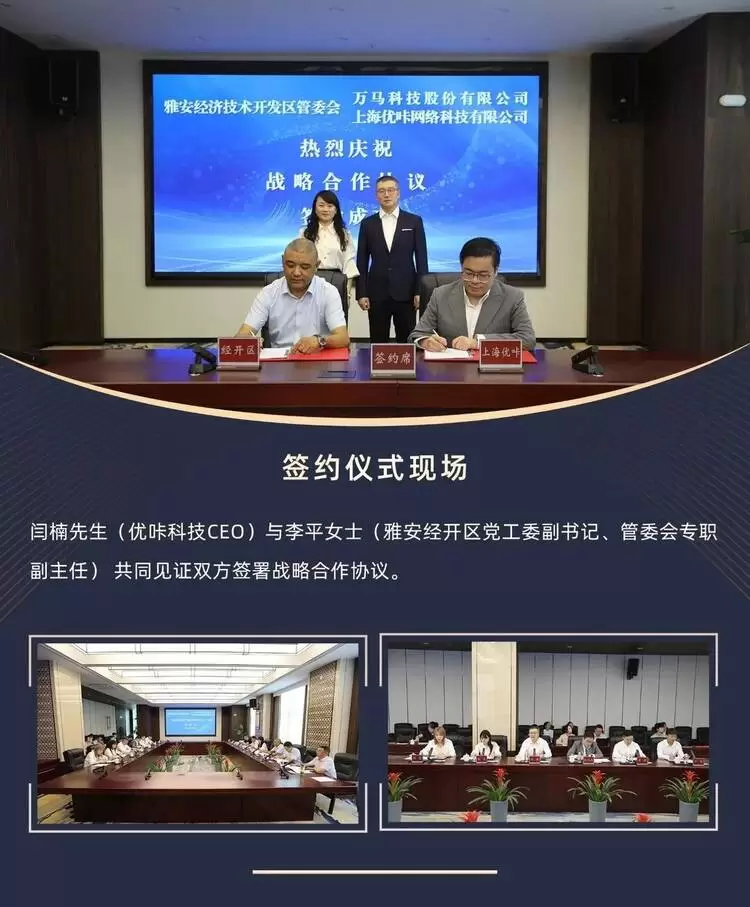 近期,优咔科技(上市公司万马科技全资子公司)与雅安经开区签署《合作框架协议》,双方拟于自动驾驶及智能网联领域开展深入合作。为满足车企自动驾驶由车端算力转向云端算力,解决物联网过程中,汽车智能化、网联化、电动化发展需求,双方拟开展战略合作,深化产业布局,满足双方对于产业链及业务上的需求。