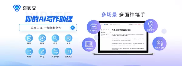 「奇妙文」是一款AI 写作应用,其灵活简洁的编辑模式支持“续写”、“改写”、“扩写”、“缩写”、“提炼要点”、“风格转换”、“纠错”、“翻译”八大 AI 写作功能。用户能在写作过程中一键唤醒AI,在 AI 帮助下更快、更好地创作内容。「奇妙文」还支持在写作中根据文字内容自动生成配图,真正做到图文并茂,文思泉涌。