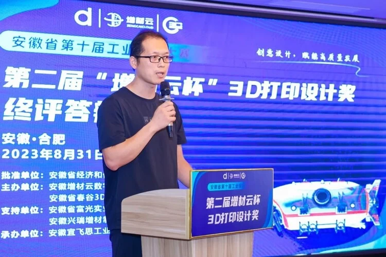 决赛开始前,由安徽省春谷3D打印智能装备产业技术研究有限公司副院长吴贫代表主办方致辞,吴总表示:“安徽省第十届工业设计大赛第二届“增材云杯”3D打印设计奖分项赛是依托芜湖市增材制造产业基础,为推动3D打印技术的市场化应用而面向全国举办的设计赛事。也是为深入实施国家创新驱动发展战略、推动实体经济和数字经济融合发展,挖掘3D打印技术应用潜力,推进增材制造产业快速可持续发展,加快培育制造业发展新动能而举办的设计赛事。”
