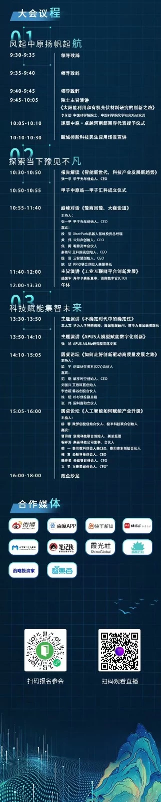 大会将分为《风起中原,扬帆起航》《探索当下,豫见不凡》《科技赋能,集智未来》三个篇章,以下为各个篇章的精彩亮点。